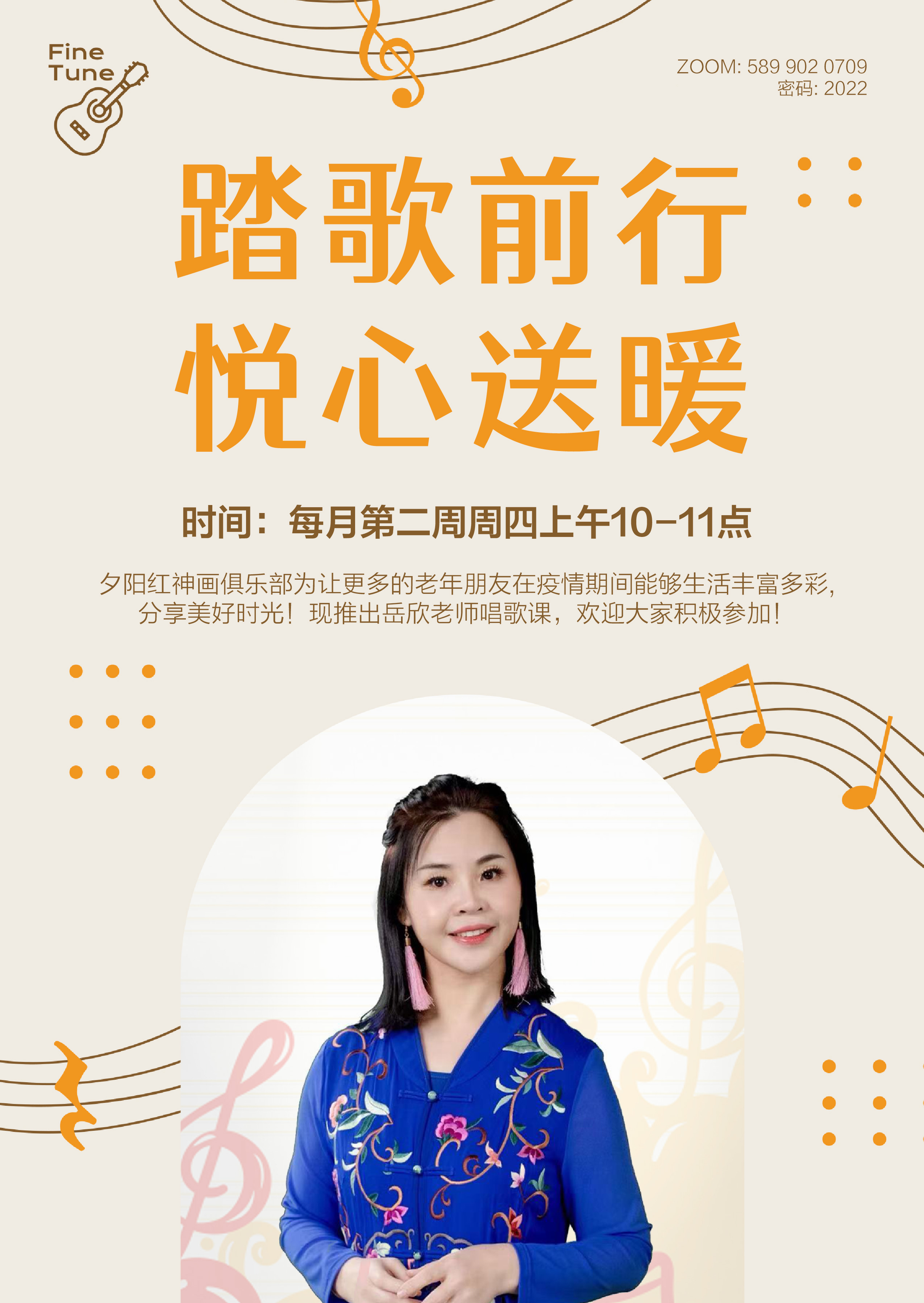 大家好,夕阳红神画俱乐部为让更多的老年朋友在疫情期间生活丰富多彩, 分享美好时光!现推出岳欣老师唱歌课,欢迎大家积极参加!