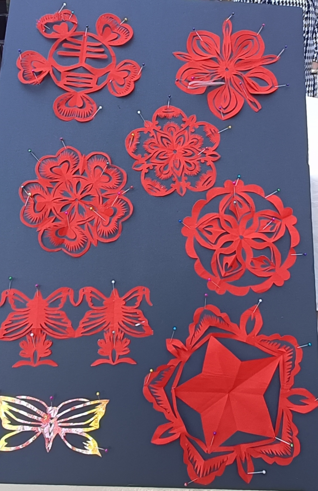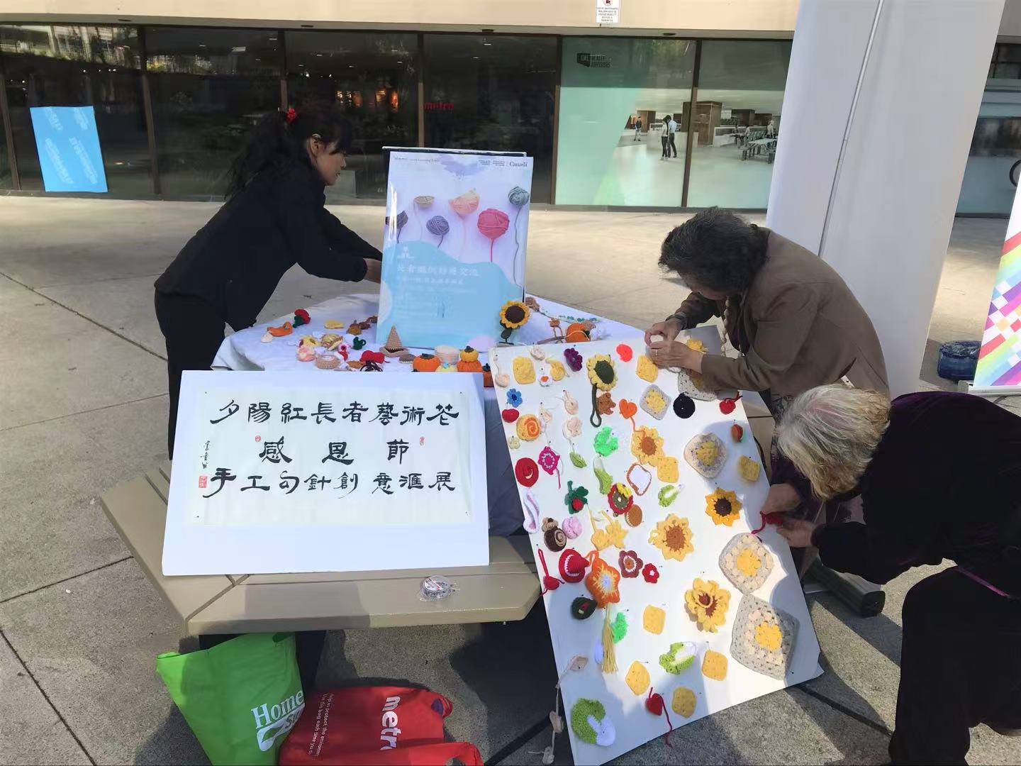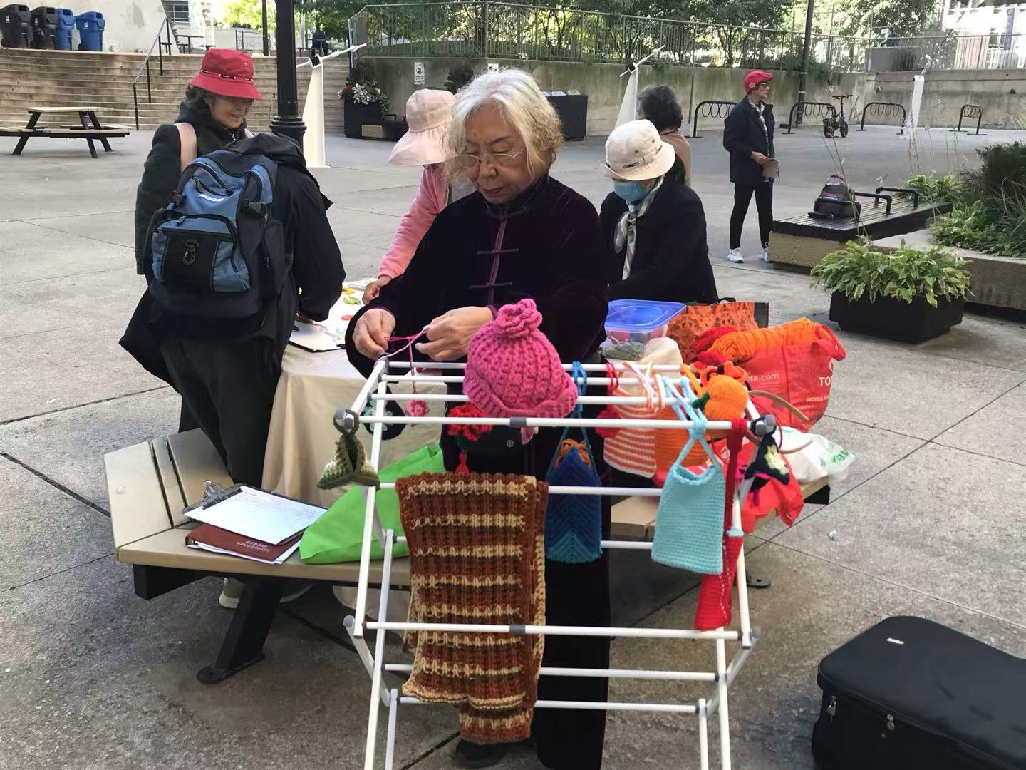 在一旁的手工艺展区,同样人气不减。桌上摆放着琳琅满目的作品——精致的剪纸、细腻的钩针编织、色彩明快的织物工艺。